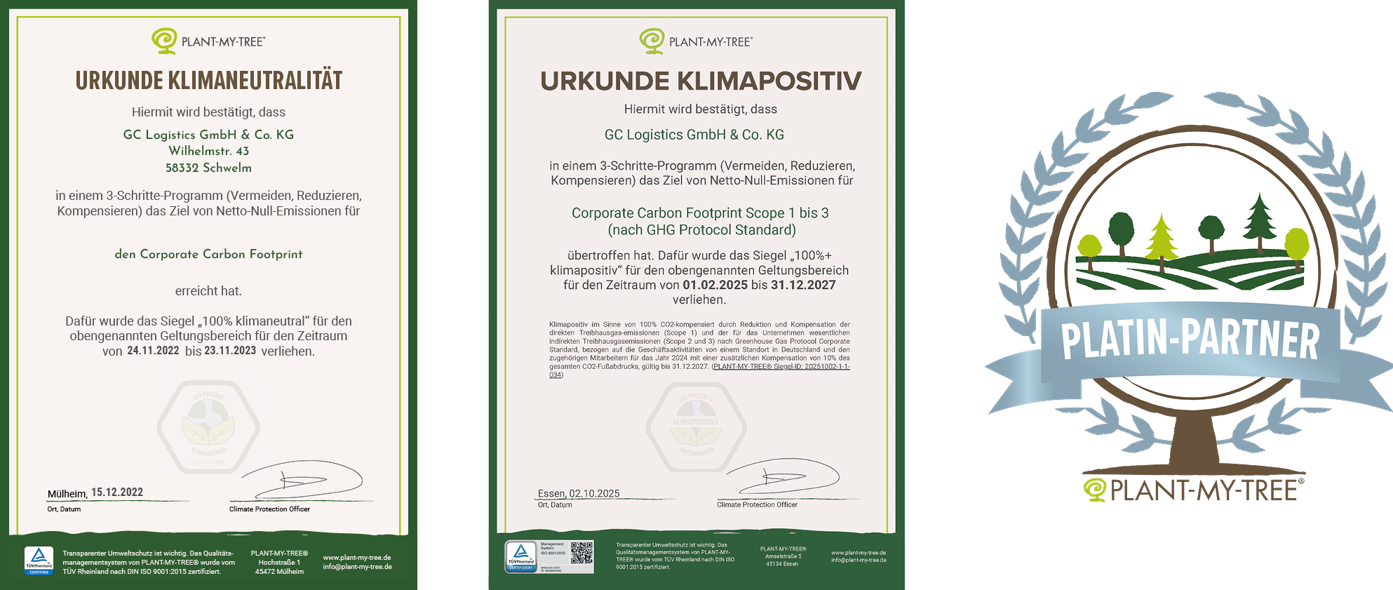 GCL wurde 2022 von PLANT-MY-TREE® mit dem „Klimaneutral“-Siegel ausgezeichnet.